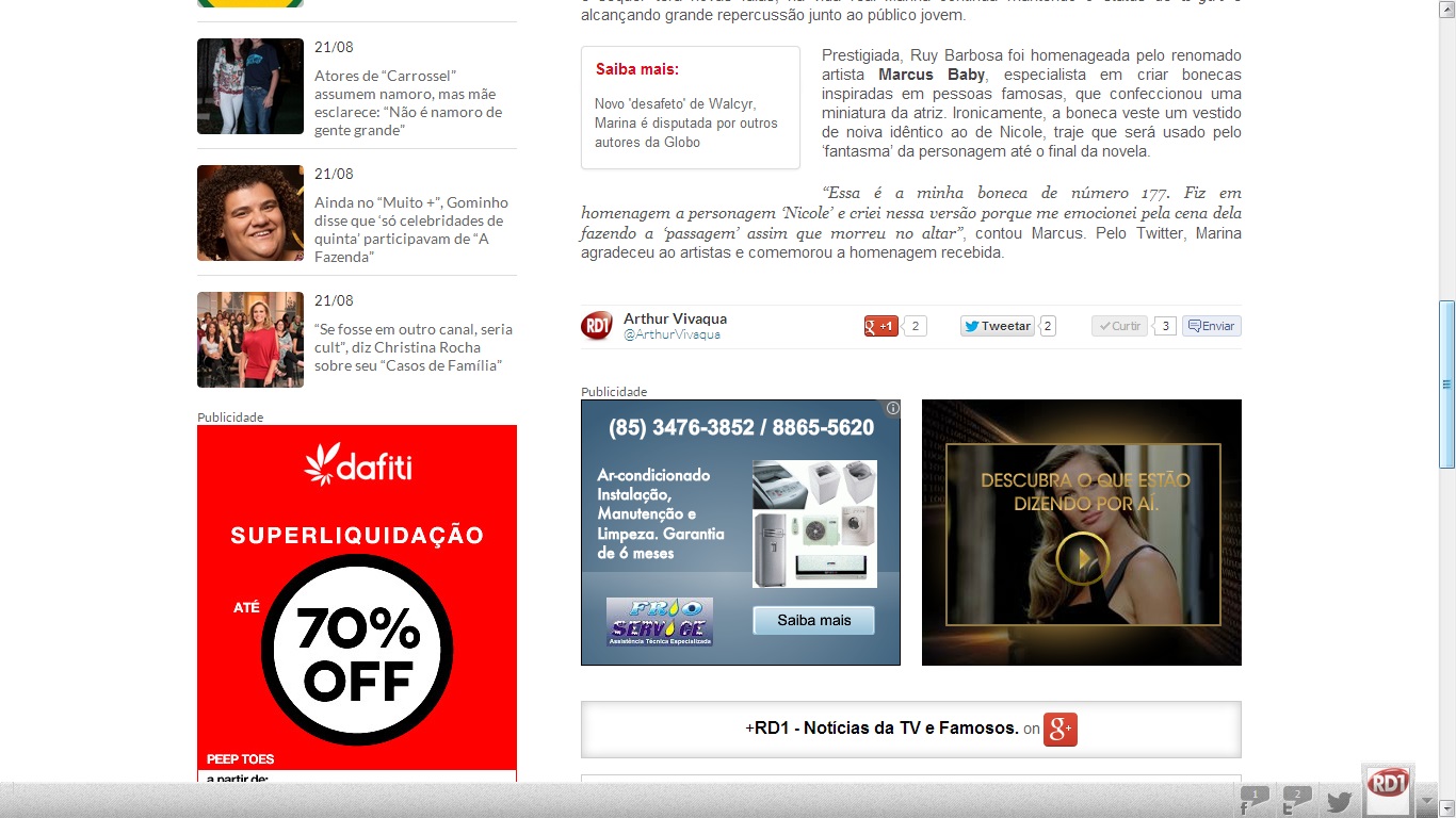 Também comentaram a boneca "Nicole" os sites "Novela Fashion Week", "O Planeta TV", "TV Foco", "Rondônia Dinâmica", "TV Goiania", "Tribuna Hoje", "Paraíso Wev - Whazzup", "Centershop", "Santa Fé OnLine", "Diário OnLine", "Portal ORM", "Volúvia", "Tudo Notícia", "Diário Catarinense", "Maceió Em Foco", e "Revista Clips", além de vários outros jornais e programas locais na qual tomei conhecimento mas até o fechamento desse post não havia conseguido o registro oficial.