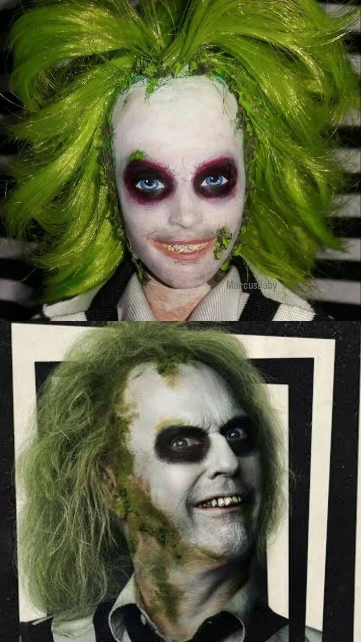 Essa é a minha versão "Ken" para o personagem "Beetlejuice", vivido pelo ator norte americano Michael Keaton no filme "Os Fantasmas Ainda Se Divertem" ("Beetlejuice, Beetlejuice" - 2024). Para a construção dessa réplica utilizei um boneco modelo "made-to-move" onde alterei toda sua tonalidade de pele e na cabeça fiz total mudança de maquiagem, novo cabelo, e aplicação de dentes de micro acetato. eu terno foi feita na costura em malha tecnológica e a camisa interna tem enchimento para simular uma "barriga" pretuberante. As botas foram customizadas do meu estoque. Todo projeto consumiu 10 dias de trabalho e o resultado vocês conferem abaixo:
